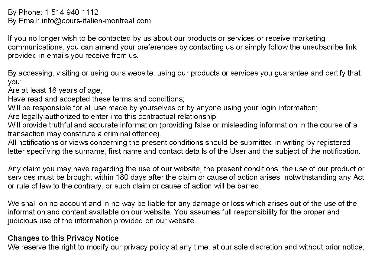 Italian courses in Montreal given, in small groups. The courses of Italian are given by native Italian teachers coming directly from Italy. The Italian courses are mainly focused on conversation. Following our Italian courses in Montreal will give you the opportunity to travel through the Italian language, culture and Italian style of life. Italian translation services also available. Teachers of Italian certified by the Italian University.